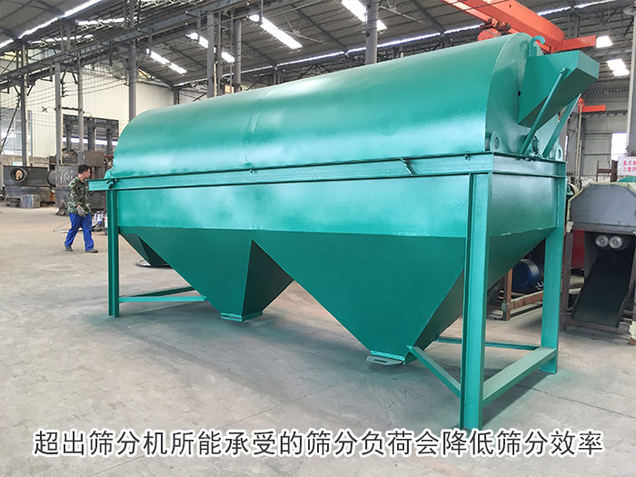 在使用滚筒筛时投料不均匀就会大大降低筛分效率,如果一次投料过多的话,超出筛分机所能承受的筛分负荷,使物料还没有来得及被筛分就从出料口排出,导致过多的细料从粗料口排出,会大大的降低筛分效率。