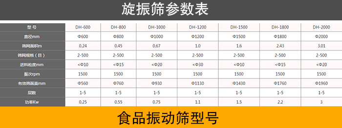 设备型号通常指的是振动电机的型号,振动电机电机是食品振动筛的心脏,它决定整台设备的筛分效率,即单位时间内物料的产出量,每位用户所需要的处理量不同,所以就需要选择不同的振动电机,从而导致选型时的价格有差异。